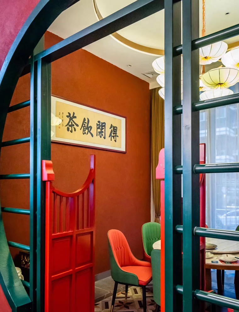 品深餐飲設計總結一句話形容悅得閑茶樓整體色彩搭配主題:紅配綠,奢華典雅有活力;大紅配大綠,富貴吉祥更添財氣。
