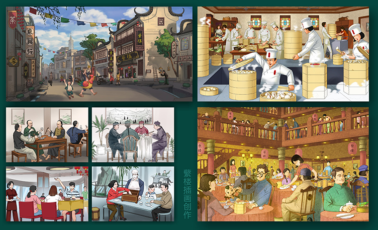 根據茶樓主廚的描述,我們創作還原了蘩樓當年的西關同興街蘩樓的盛況,讓現代人透過影像再次了解蘩樓是怎么來的,當年是什么狀況。