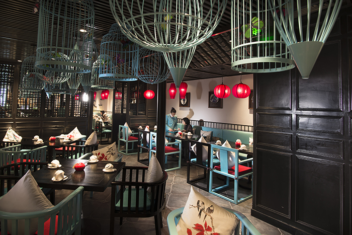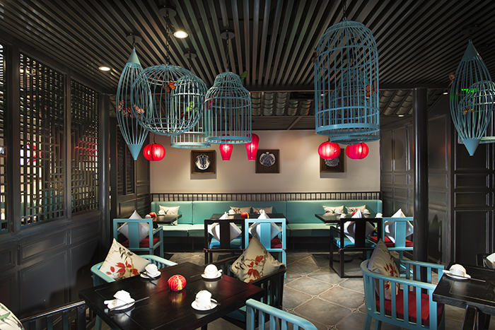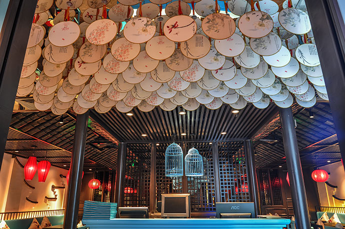 有了識別度高的平面形象,我們更要有強烈的有鮮明的主題風格,或清新、或時尚歡快的空間裝飾,所以在空間設計上,我們充分依托中式風和蘇繡元素。