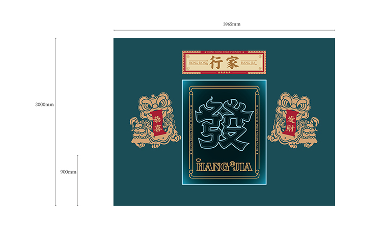 品牌記憶點:南派醒獅+香港海洋藍+玫瑰金不銹鋼+品牌元素在空間中應用
