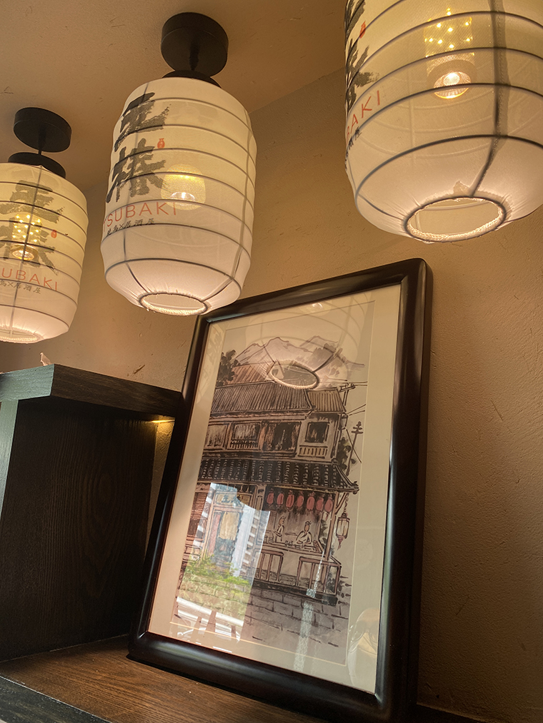 品牌記憶點:日本京都風格門頭設計+玉椿標識及家徽+燒鳥手繪畫面+四大主色調。